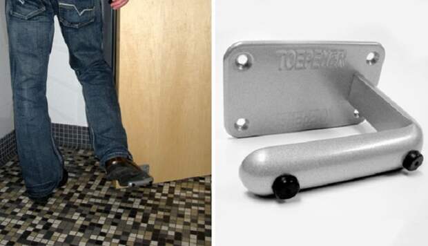 Трогать ручку двери в общественных местах не особо приятно. Даже тем, кто без лишней брезгливости относится к микробам. Чтобы исключить для людей любой дискомфорт, во многих зарубежных странах двери в общественных местах устроены особым образом: у них ручка располагается не на привычном месте, а снизу. Открываются такие двери ногой. Руки пачкать не придется, а гермафобы восторжествуют.